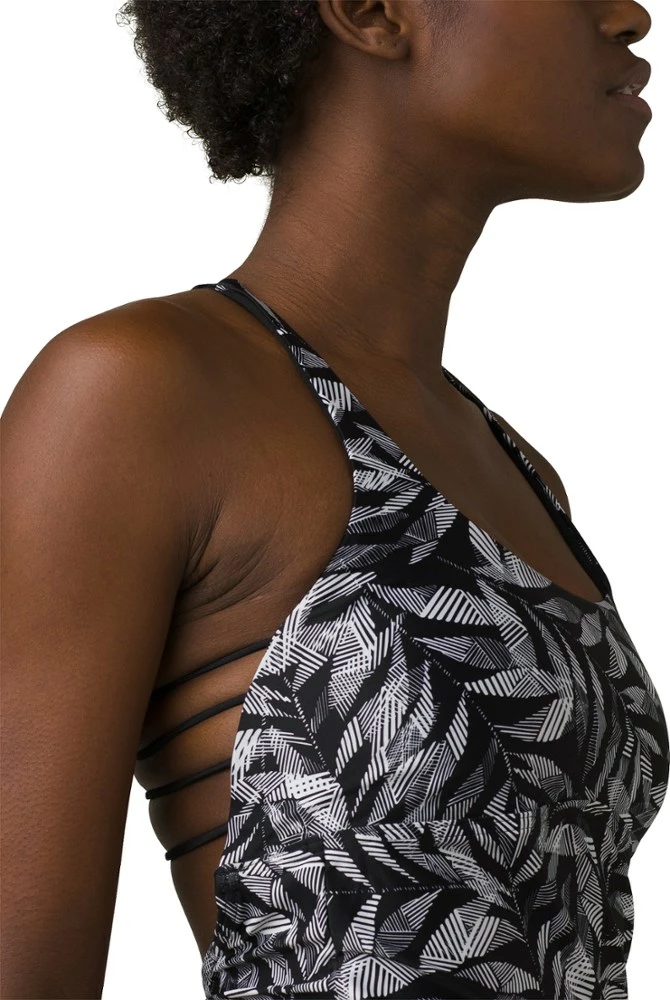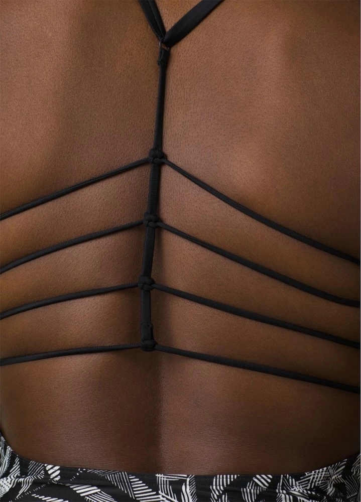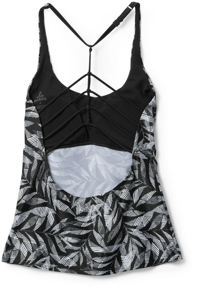 You’re always on the right side when you’re poolside! The prAna Margot Tankini top is styled with a knotted multi-strap detail in the back and a modest scoop neck with moderate support and coverage.