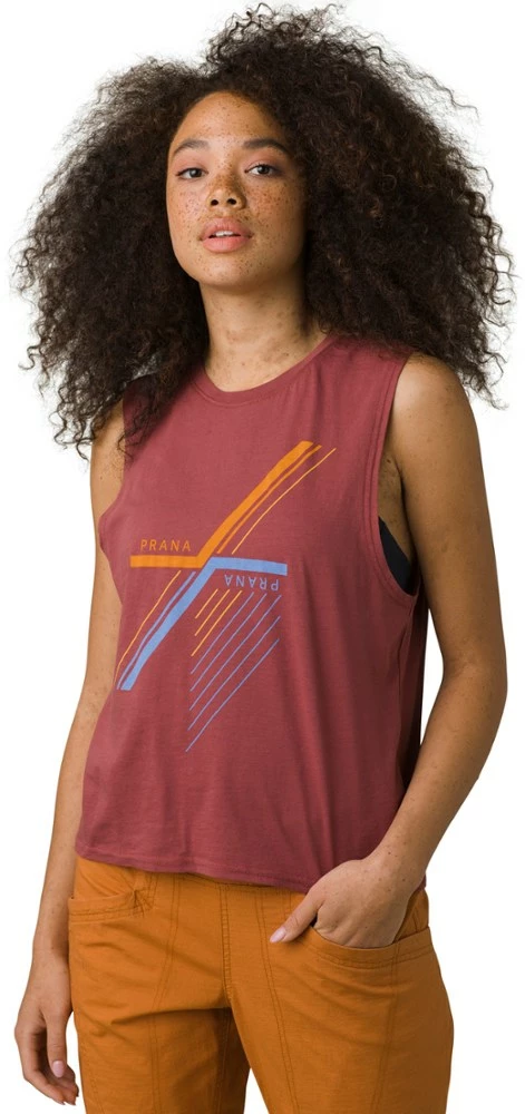 With a fun graphic and sun’s-out styling, this women’s prAna Organic Graphic Sleeveless tank top is ready to hit the beach, loop the park or log some miles in nice weather.