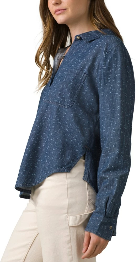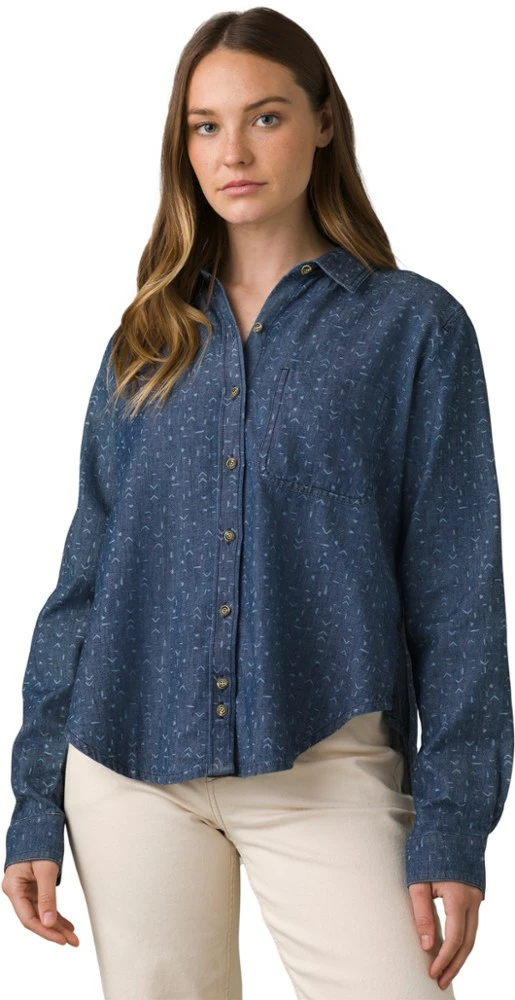 Serving classic vibes with modern details, this women’s prAna Washed Out denim shirt upgrades your casual kit with its comfy cotton twill, subtle print and a relaxed fit.